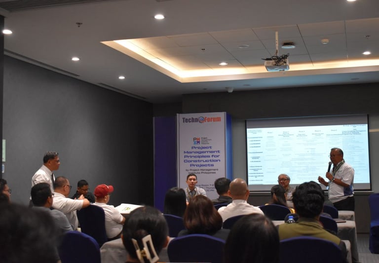 Construction Management experts - Engr. Jesus ‘Jess’ Matias, PMP and Engr. Jommel Macabagdal, PMP - presented in front of a jam-packed audience last April 3, 2025. Ms. Tina Rodriguez who is the Executive Committee Lead for Programs & Events welcomed everyone. There was a wonderful panel discussion wherein the 2 speakers were joined by Engr. Emilio ‘Lilit’ Tumbocon, PMP.